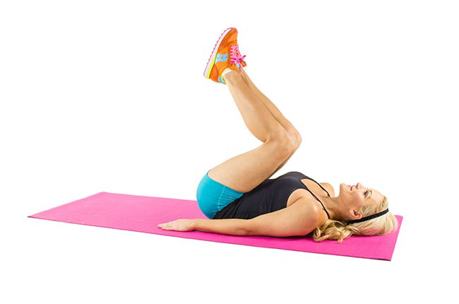 Step 3: Pause, then slowly lower your legs and roll your back down until you are back in the starting position. Use your core muscles to lift; avoid rocking back and forth. Repeat this as many times as you can in 60 seconds.