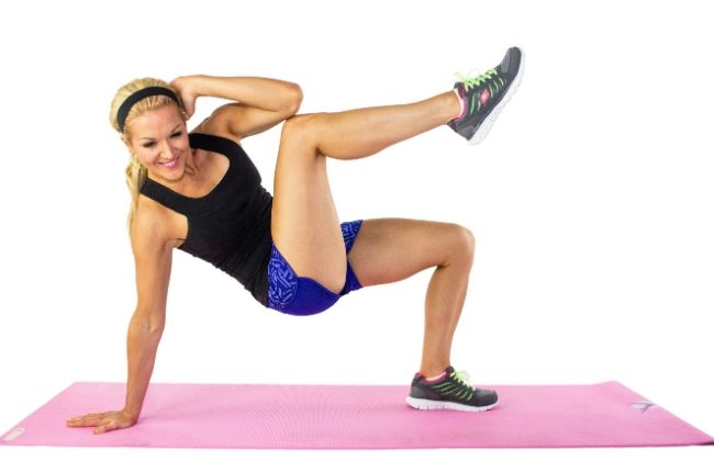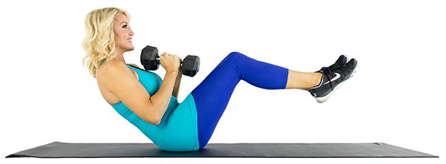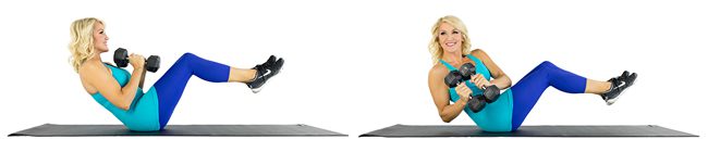 Modification (Advanced): Lift feet off the floor, lean further back. You can also hold a heavy dumbbell and tap it on the floor on each twist. This is a great and easy exercise to get lean abs.