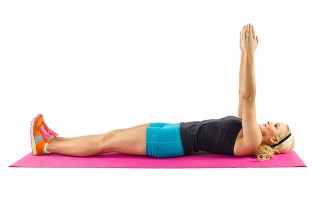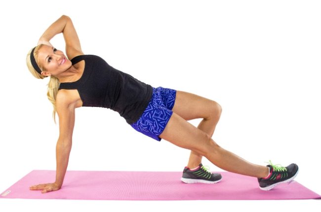 Step 1: Lie face down on the floor resting on your forearms. Push up off the floor, raising up onto toes and resting on the elbows. Keep your back flat, contracting your abdominal muscles while you hold your body in a straight line from head to heels. Don’t let your butt sag or stick up in the air.