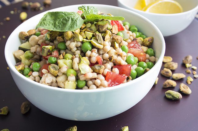 Pack and Go Recipe: Chickpea Pearl and Couscous Salad. This is a great clean eating recipe that’s low-carb and loaded with fresh veggies and fiber.