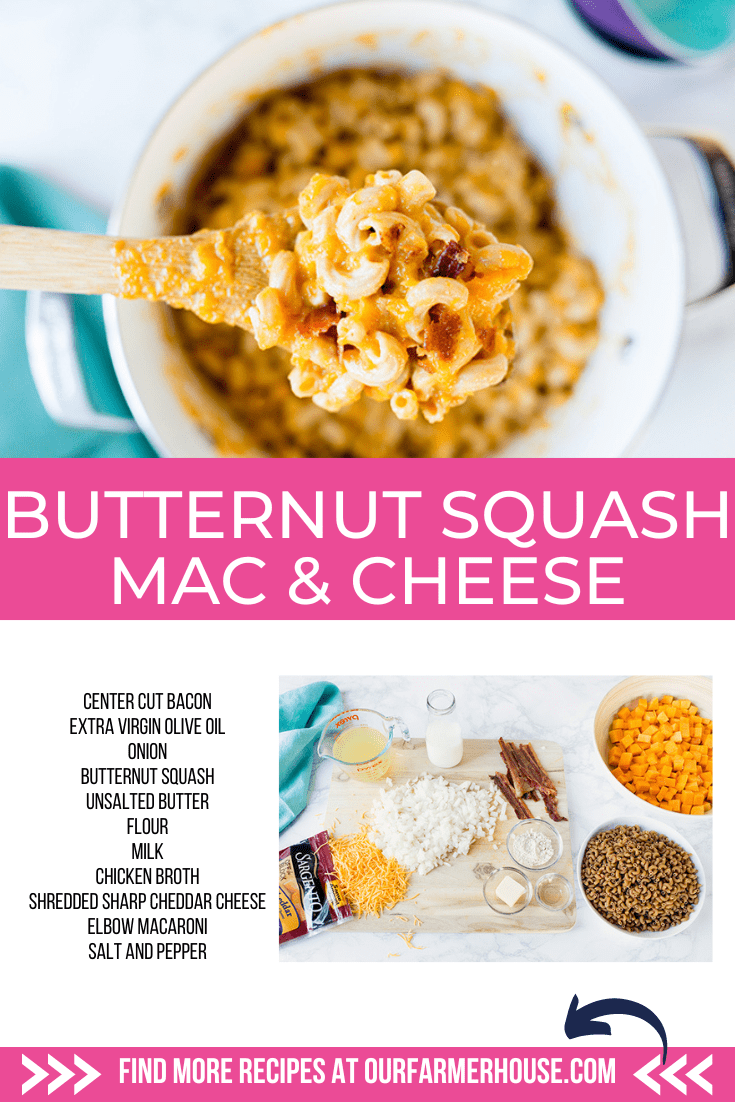 Ingredients in Butternut Squash Mac and Cheese with Bacon