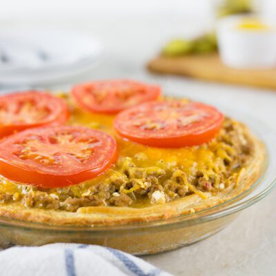 This cheeseburger pie is essentially a casserole that has the flavors of a cheeseburger. Right there, you know you can’t go wrong making it for dinner. It is also a great dish to make ahead and freeze for another night, or to make for family and friends who might need a reason to smile.