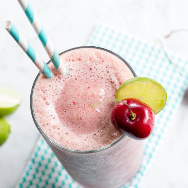 Who doesn’t love a good old-fashioned slushy? Cool off with my silky Cherry Limeade Slushy Ice Drink! It is a sweet and tart, yet creamy drink that is so refreshing on a hot day. The easiest part is that it is all done in the blender! Simply add cherry limeade mix, lime zest, lime juice, frozen cherries and frozen yogurt. Blend until frothy and creamy. You won’t believe how much cherry lime flavor this drink has! Chill outside with an ice-cold glass of my Cherry Limeade Slushy Ice Drink.