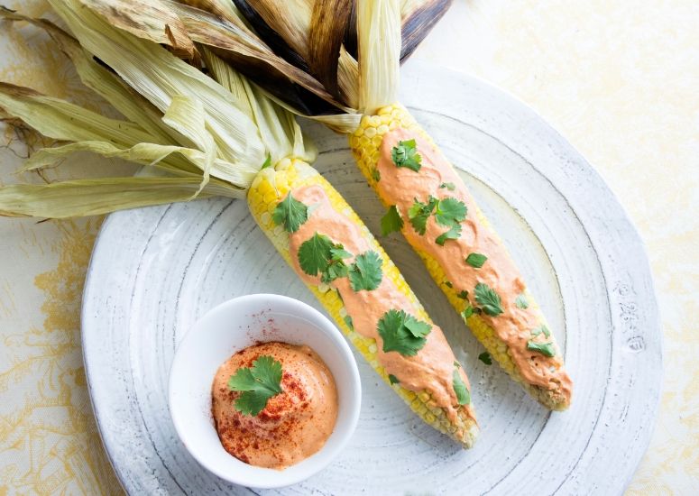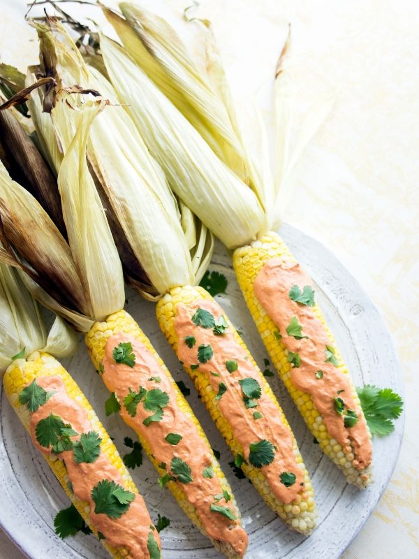 - Spread 3 Tbsp of sauce onto each corn on the cob and sprinkle with cilantro. Serve hot.