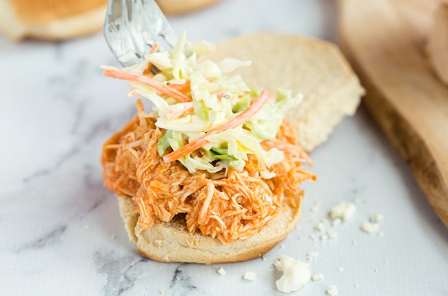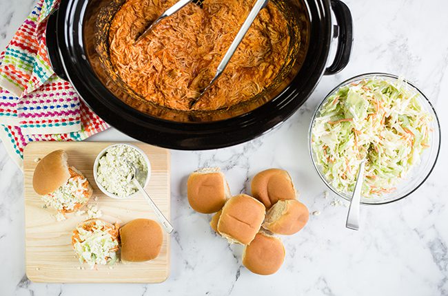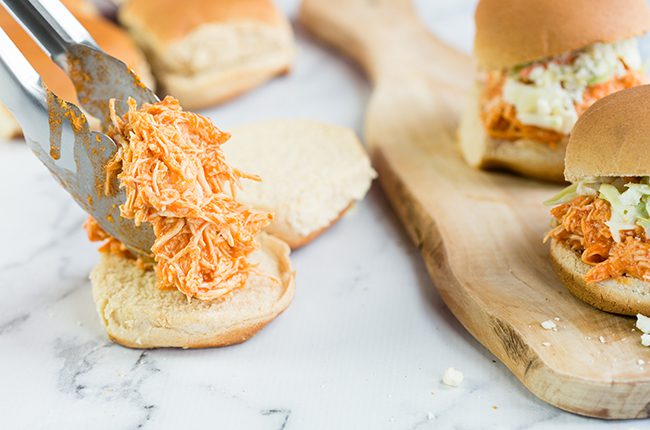 How to Make Crockpot Buffalo Chicken Sliders with Coleslaw: