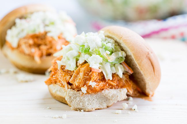 Crockpot Buffalo Chicken Sliders with Coleslaw