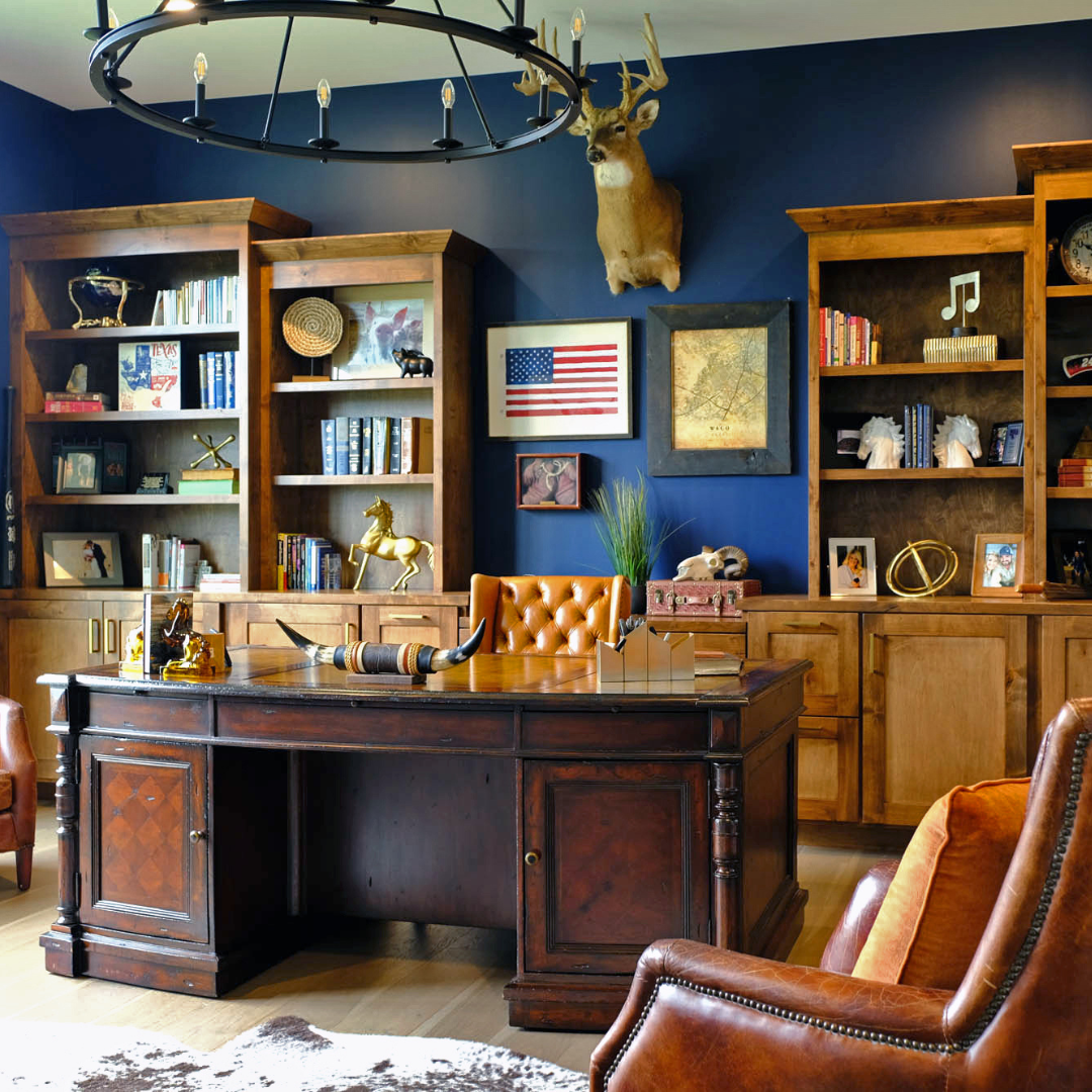 Some of the items he wanted are pretty self-explanatory – the comfy desk and chairs, and the storage space. As you can see, we definitely made sure there was plenty of cabinetry to hide printers and other electronics that don’t need to necessarily be seen.