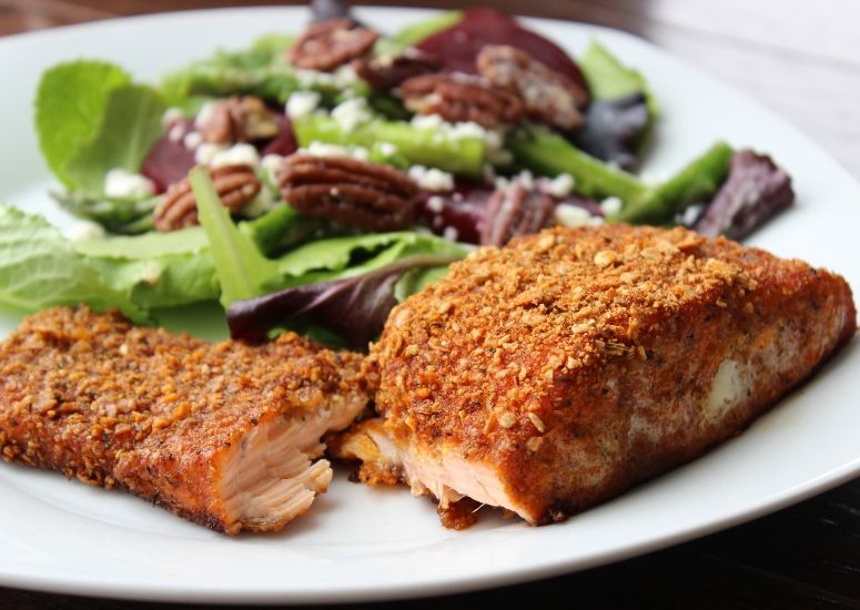 This salmon recipe has become one of my favorites. It’s easy to prepare and delicious! The coating on the salmon is just Fiber One® cereal and blackened seasoning but if you don’t have Fiber One® cereal, you can easily swap it out for any other high fiber whole grain cereal. I like this preparation of the salmon as it has a sweet and spicy taste. Bake and it’s ready to serve. Try with a side salad as the side dish!