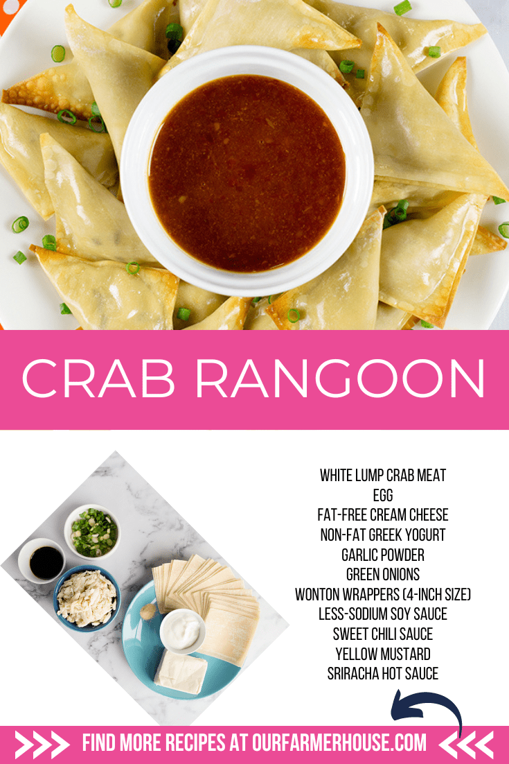 Crab rangoon is the perfect appetizer recipe for game day, get together and parties. They are easy to reheat in the oven, they are healthy and they taste simply amazing. Be sure to check out our Mini Baked Deviled Crab Cakes recipe and Sweet and Spicy Crab Cakes. They are equally as delicious!