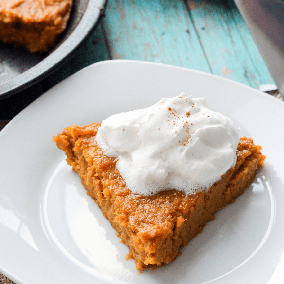 Dessert recipes are my favorite thing about the holidays, which are quickly approaching. My Low-Calorie Sweet Potato Pie is crust-less, spiced, and perfect for Autumn! First, I combine some cooked healthy sweet potatoes in a bowl and mash well. Second, I add warming spices, skim milk, whole eggs, and maple syrup. Next, I pour the batter into two (yes, this recipe makes TWO pies!) cake pans and bake until they are set. Since this recipe makes a large amount, it is perfect for serving your guests at Thanksgiving. Your friends and family will love my Low-Calorie Sweet Potato Pie!