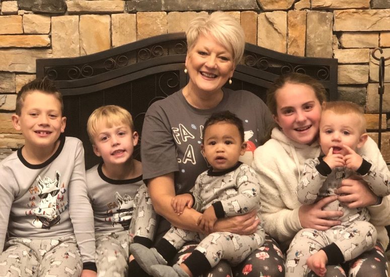 My mom and her grand-babies minus the oldest as he was absent in this photo (He’s 15 and didn’t like the idea of dressing up in matching pjs, haha)