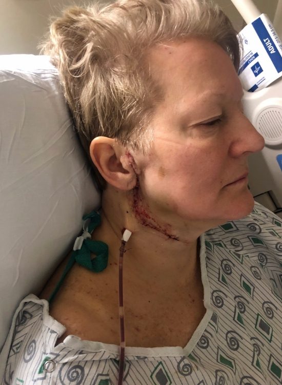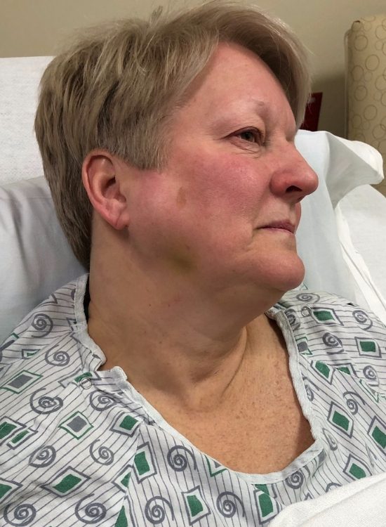 Fast forward to November of last year, and my mom shows up for Thanksgiving dinner having lost almost 20 pounds (I should mention, she was trying to lose weight and had been living low carb on turkey sticks and cheese, haha) but now, in light of the recent weight loss in her face, the tiny lump on her neck was no longer tiny but rather it had grown into a large mass that was very visible to all of us and it alarmed her sisters that were in town visiting for the holiday. At the insistence of her sisters and all of our extended family, my mom made another appointment to have her neck checked out as soon as possible. This appointment in December was much different then her previous appointments as the doctor immediately recognized that the mass would need to be removed and her surgery was scheduled for January 15, 2019.