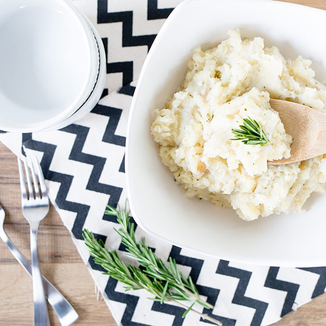 Parsnips and potatoes come together for a delicious and lightened-up take on mashed potatoes. Serve these Potato Parsnip Mash with Rosemary & Garlic anytime; they’re easy to make.