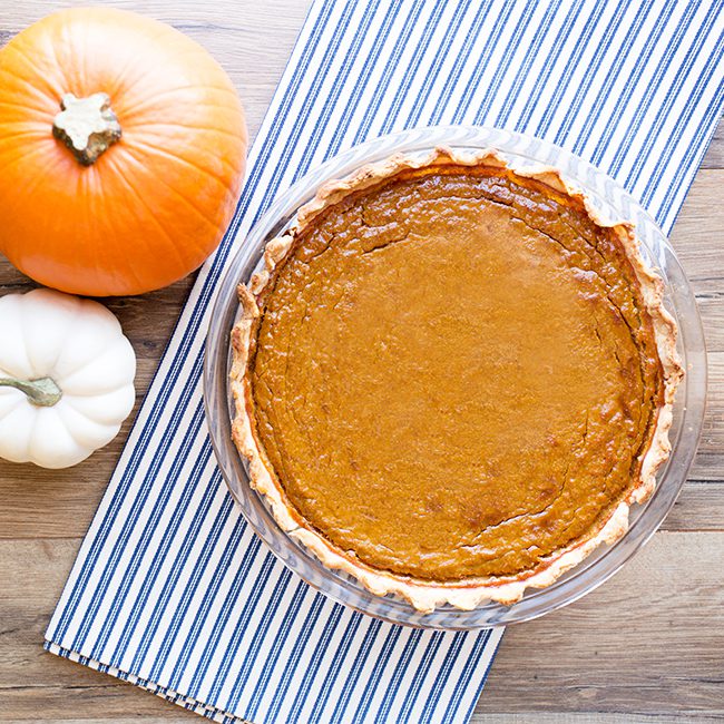One thing I love about this pumpkin pie is that it does not have to be refrigerated once it has been baked. That means I have a bit more room in my refrigerator for those other side dishes and desserts we serve during the holidays.