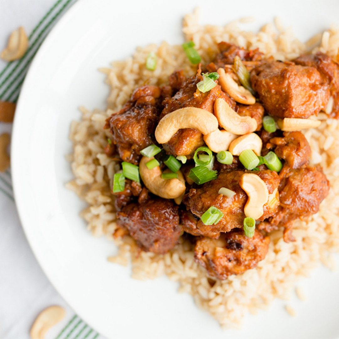 I serve this over a bowl of brown or white rice with a few diced green onions and fresh cashews on top for crunch and flavor.