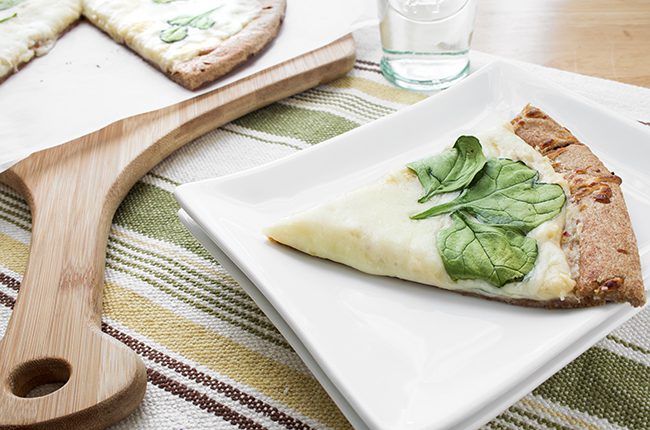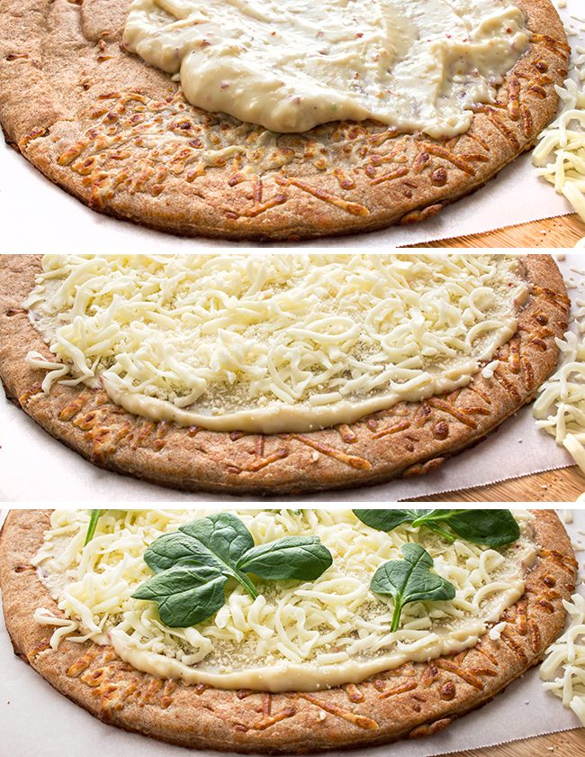 - 1 whole wheat pizza crust (I like Boboli brand) or you can make your own cauliflower crust